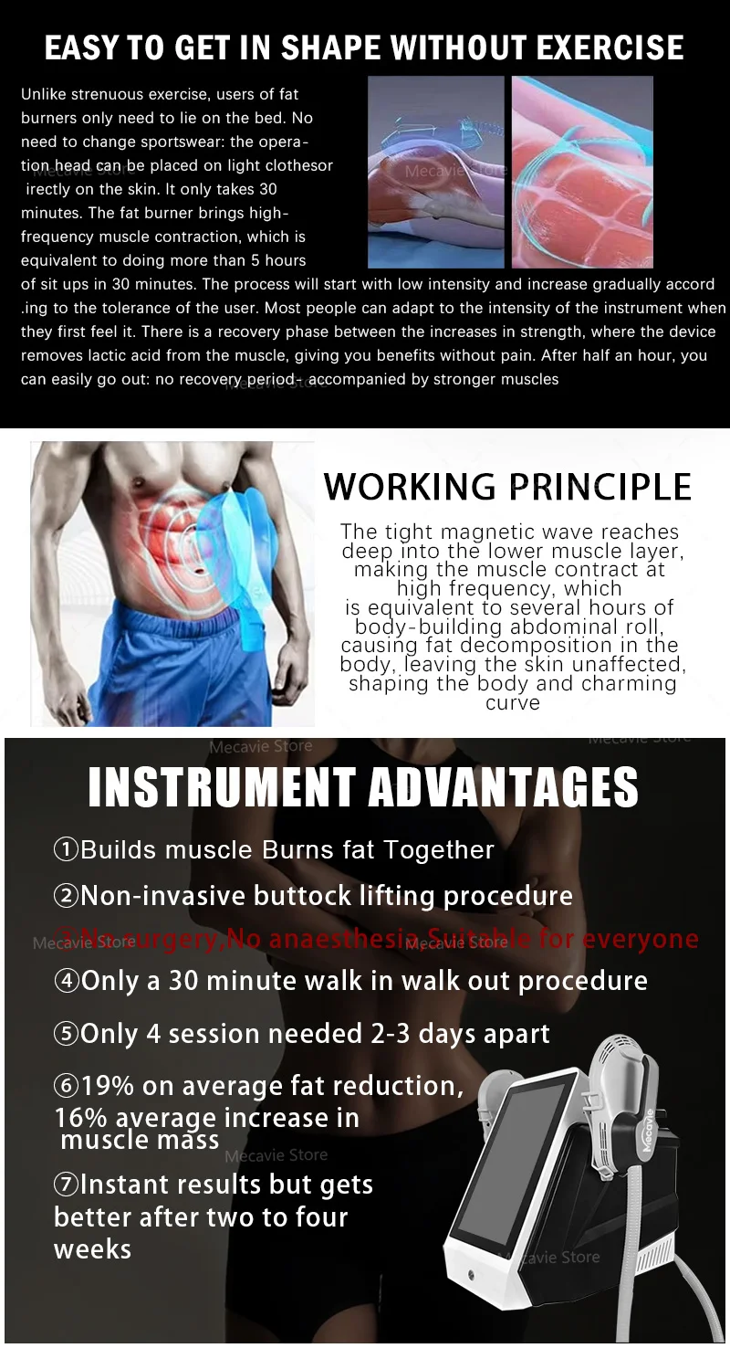1. Effective Fat Reduction & Body Shaping: Target those stubborn spots with precise magnetic energy that reduces fat cells, while gaining muscle. Say hello to a toned silhouette!